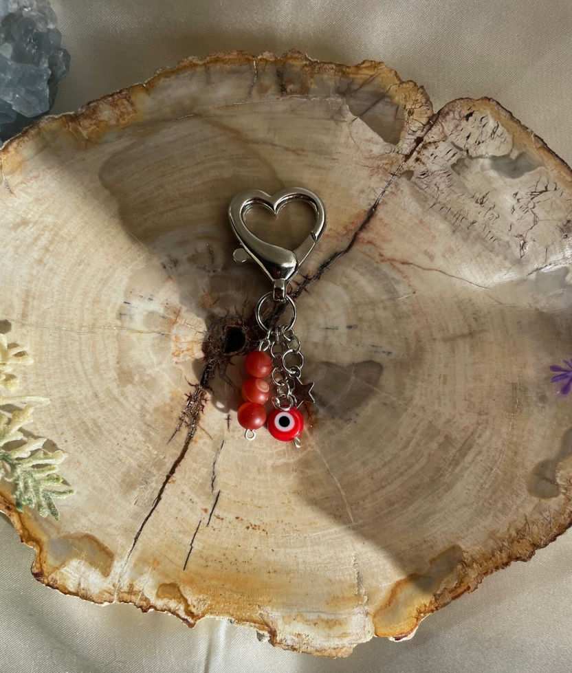 This beautiful, unique, and handmade keychain is made with carnelian beads, star charm, and a red evil eye bead.